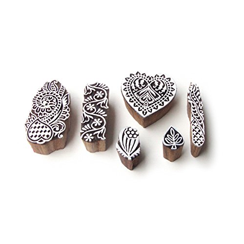 -. Title : Border and Heart Designer Pattern Wood Stamps for P.R.Inting (Set of 6)