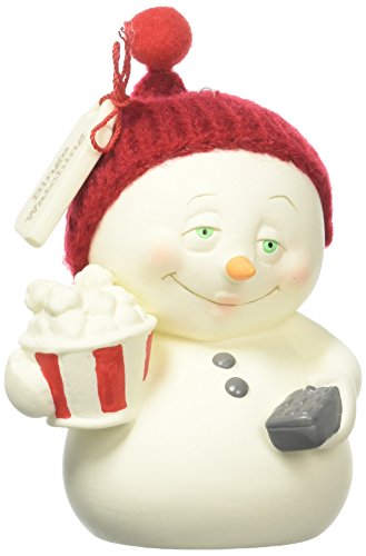 Department 56 Snowpinions “Binge Watching” Porcelain Snowman Hanging Christmas Ornament, 3”