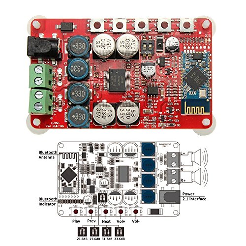 50W + 50W TDA7492P 2x50 Watt Dual Channel Amplifier Wireless Digital Bluetooth 4.0 Audio Receiver Amplifier Board (Red)