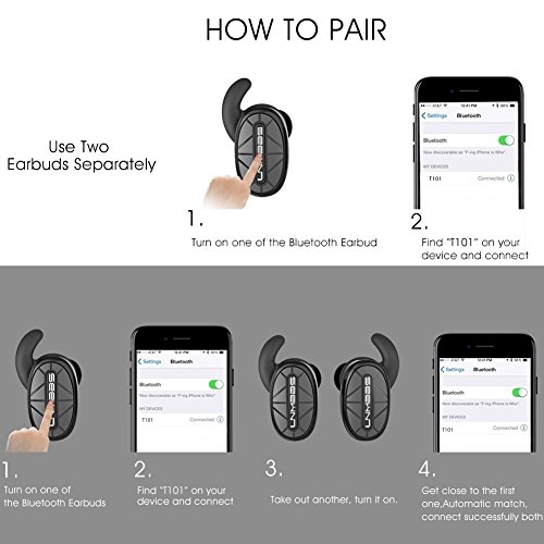 TRULY CORDLESS WITH BLUETOOTH: No more cable mess, these earbuds are completely wireless through a Bluetooth connection.Without any cord troubles, you can enjoy your stereo music freely when you walk and jog.