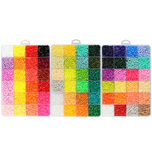 1.Plastic Contains 54000 beads Designed to be used with Perler Pegboards and ironing paper.
