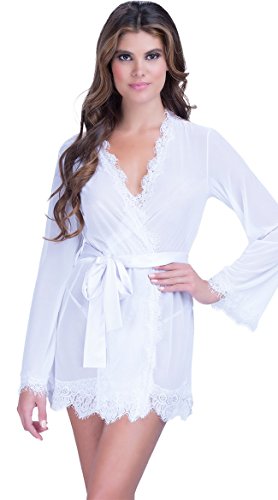 Binding : Apparel Product Description This sexy lace border robe, available in multiple colors, can be described as a perfect combination of magnificence and classiness . Silky feel and look of Polyester fabric make the robe look rich, smooth and lustrous. Washing instructions: Machine wash it separately in cold water Tumble or hand dry. One size fits up to size Medium (8-10). Approximate Length - 27.5 inches. 0 |
