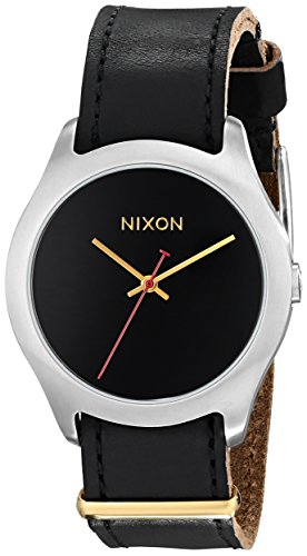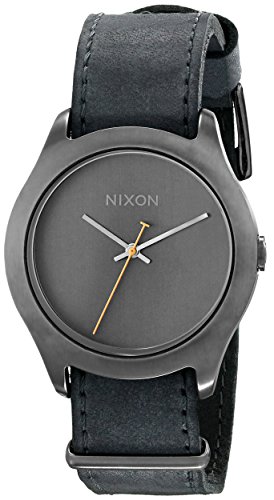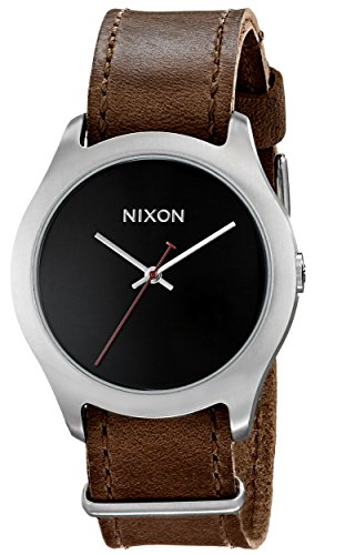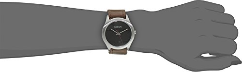 Round watch featuring numberless dial with logo and baton-shape hands, 38mm stainless steel case with mineral dial window, Japanese quartz movement with analog display, Leather band with buckle closure, Water resistant to 100 m (330 ft)Feature