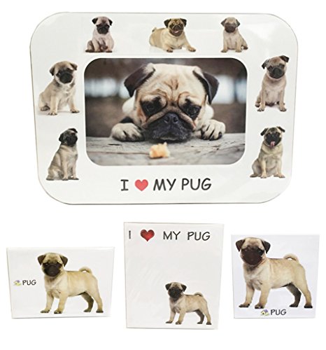 I Love My Pug Magnet Set (2 Metal Magnets, 1 Photo Frame, 1 Memo Pad)