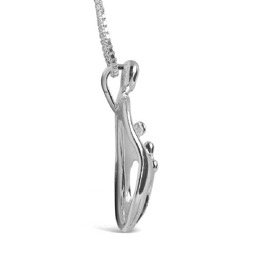 This simple artistic symbol of family love makes a great gift and a powerful statement that is sure to warm the heart of any mother - no matter the age of her children. Measuring approximately 1 inch L x 1/2 inch W, this original Loving Family pendant depicts a loving couple and four children whose touching embrace forms a heart. A silver matte finish center adds dimension in contrast to the polished finish of the outer part of the pendant. Pendant is crafted from .925 sterling silver and finished with a tarnish-resistant coating. A sentimental favorite, this pendant comes ready to wear on a delicate 18 inch L sterling silver box chain with spring ring clasp. Pendant also looks great on a snake chain such as B00062BISU (purchased separately), for those who prefer a heavier looking chain. Our jewelry is proudly made in America with US and imported parts. We do our part for the environment by crafting our jewelry from recycled .925 sterling silver. Loving Family gift box is made in China. *Note: The white silver matte finish in the center of each .925 sterling silver Loving Family pendant is created by sandblasting the inside of the pendant and then applying a silver finish to that area to create a dimensional look. Minute quantities of different metals can be utilized in the liquid bath to facilitate the bonding of both the silver finish and the protective clear plastic resin anti-tarnish e-coat finish to the surface of the .925 sterling silver Loving Family piece. These metals do not include nickel or any other ferromagnetic materials. We invite you to contact us with any questions or concerns that you may have regarding any of our Loving Family products.Feature