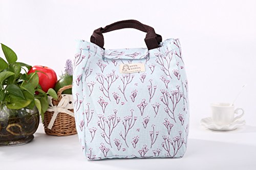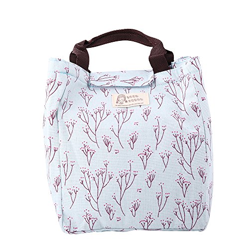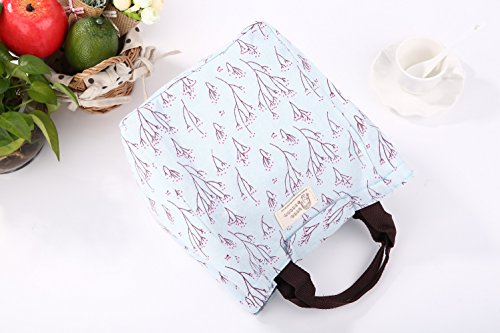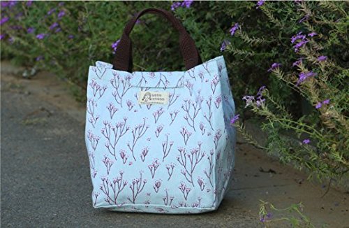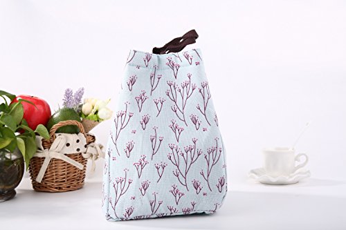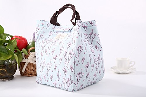 Dxg Canvas Lunch Bags, Insulated Lunch Bag Lunch Box Cooler Carry Bag for Travel and Picnic (Blue branch)