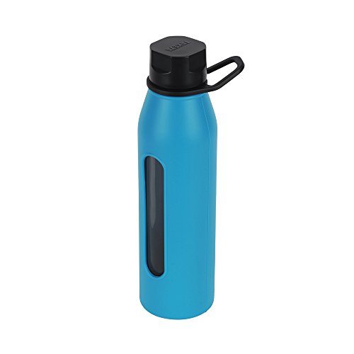 -. Title : Takeya Classic Glass Water Bottle with Silicone Sleeve, Black/Cobalt, 22 Ounce