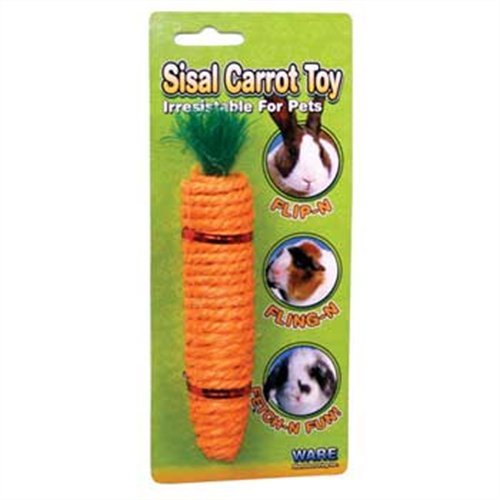 Studio : Ware Manufacturing Inc. Publisher : Ware Manufacturing Inc. Binding : Misc. Product Description This sisal carrot toy is a safe and fun toy for rabbits and other small pets. Toys encourage play-time activities and help prevent cage boredom. Bunnies and other small pets love the shape and texture and owners love the creative carrot design. Also available in jumbo size. Measures 3-1/2-inch width by 1-inch depth by 8-1/4-inch height. 0