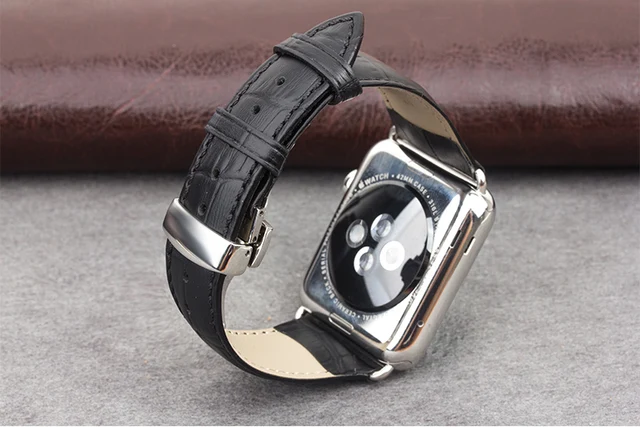 | [해외]Goosuu 정품 송아지 시계 스트랩 스테인레스 스틸 어댑터 38mm42mm 대한 iwatch 가죽 apple watch 스트랩 밴드 나비 버클 |