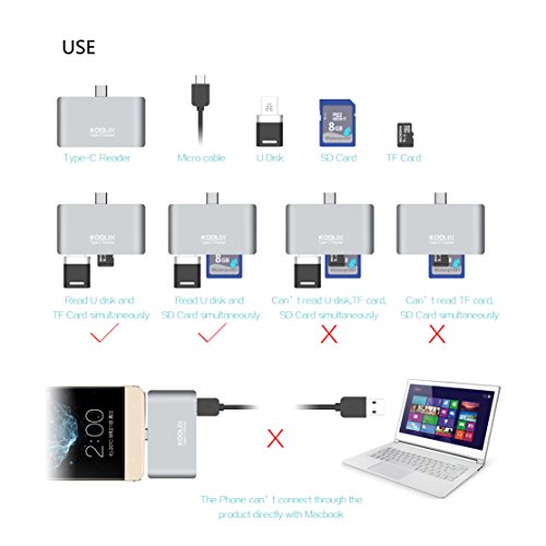 KODLIX USB OTG Type-C Hub, USB 3.0 Port, TF/SD Card Reader, Micro-usb Port for Macbook, Type-c Smarthones/Tablets/Laptops