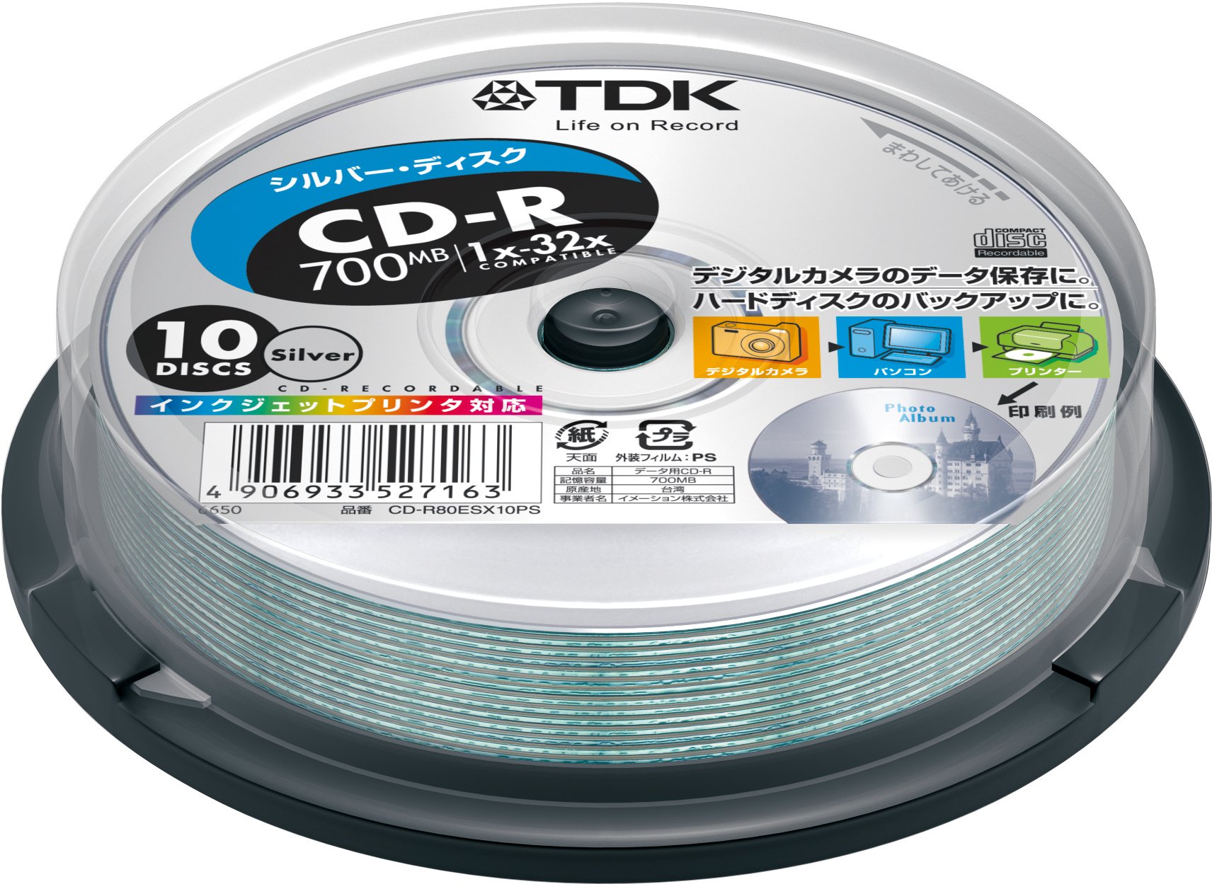 TDK 32-speed compatible CD-R 700MB Silver printable 10 sheets pot case CD-R80ESX10PS