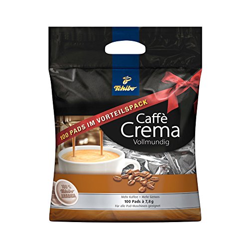 100 Pads Caffè Crema Vollmundig Tchibo Experten wissen, dass mehr Kaffee im Pad auch mehr Genuss bedeutet. Darum enthält jedes Pad 7,8 g* Tchibo Arabica - für ein unvergleichliches Geschmackserlebnis.