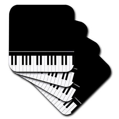3dRose cst_112947_1 Black Piano Edge-Baby Grand Keyboard Music Design for Pianist Musical Player and Musician Gifts-Soft Coasters, Set of 4