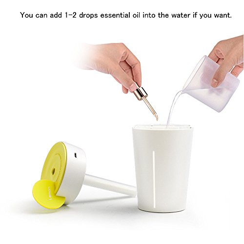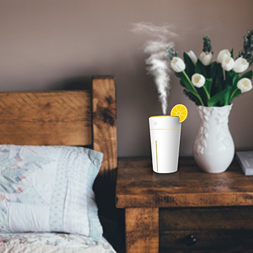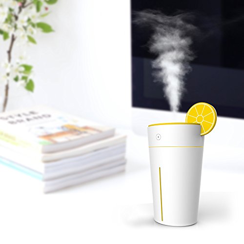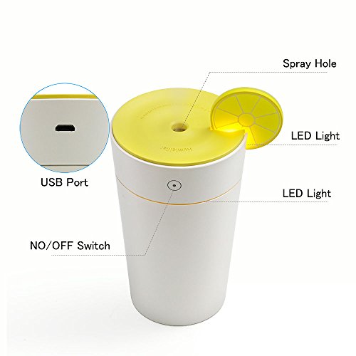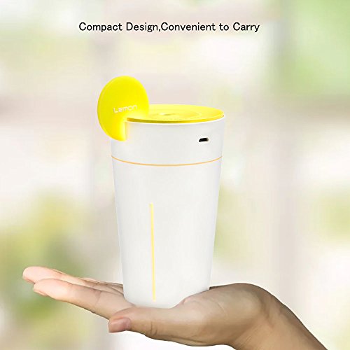 Woleyi 200ml Cool Mist Air Humidifier with Auto Off Ultrasonic Diffuser LED Night-Lighting and 4-5 Hours Diffusing for Home and Office Essential Lemon Shape Cup