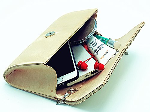 Product Description 1.RosaRose clutch has shinny sequins with satin material bottom detail on the body for the perfect night-out accessory. This evening bag collect iPhone , cash, lipstick, makeup compact and other small essential. The bag also has 2 styles that removable chain straps that allow you to keep your purse close to your body without holding it in your hand. You choose how you want to wear it. It's a versatile option to use for your favorite occasion. 2.elegant satin and fabric accent add stylish aluminum mesh .Magnetic snap closure that holds your valuable items inside. This clutch bag has a small main compartment with a fully lined interior that offers storage for your cell phone, lipstick, wallet as well as. 0