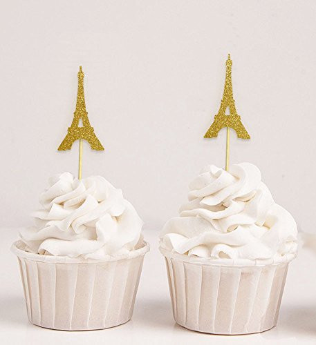 Darling Souvenir, Eiffel Tower Cupcake Toppers, Wedding Party Dessert Decorations - Pack Of 20