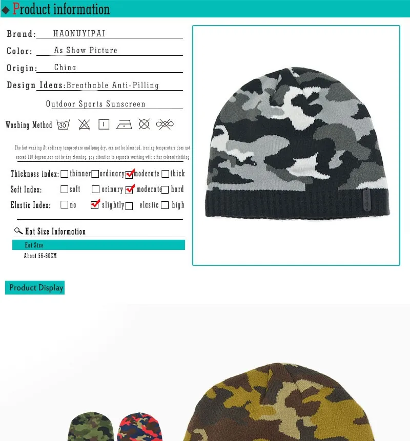 | [해외]높은 품질 겨울 따뜻한 니트 위장 남성 여성 더블 레이어 모자 두개골 야외 스키 모자 Gorros 보닛 A061 |