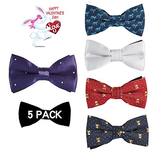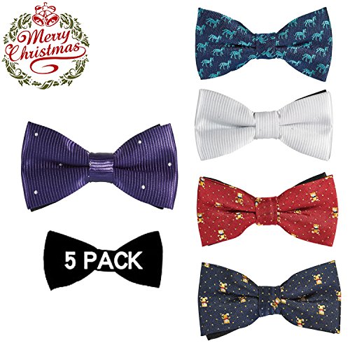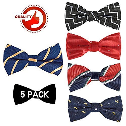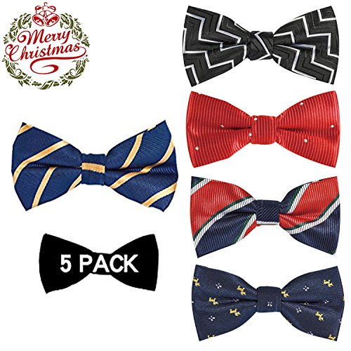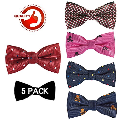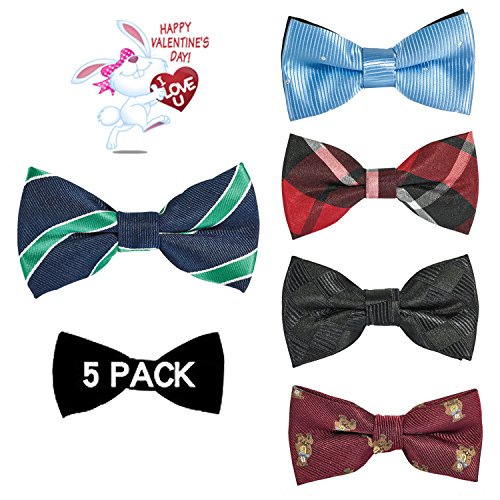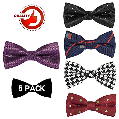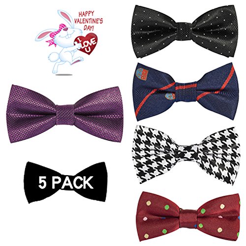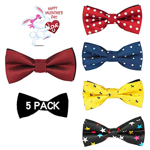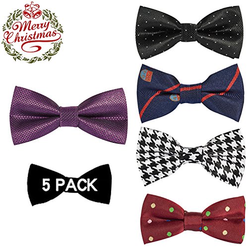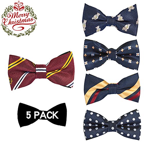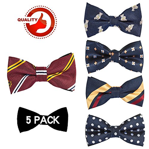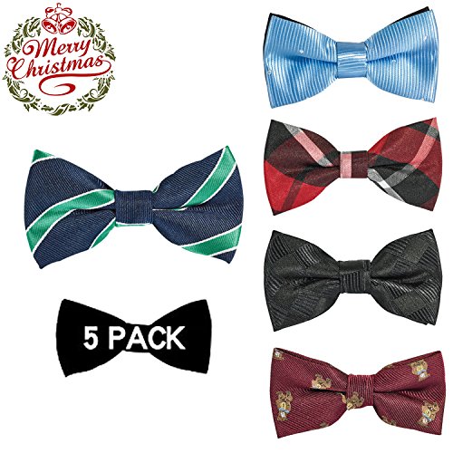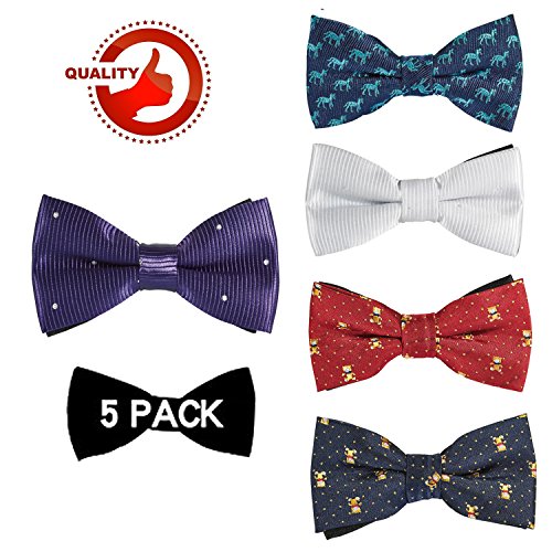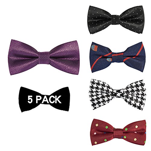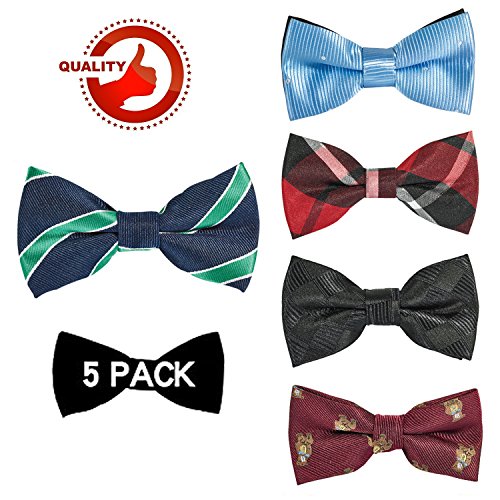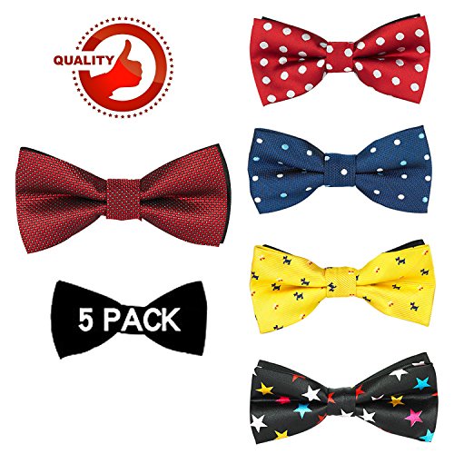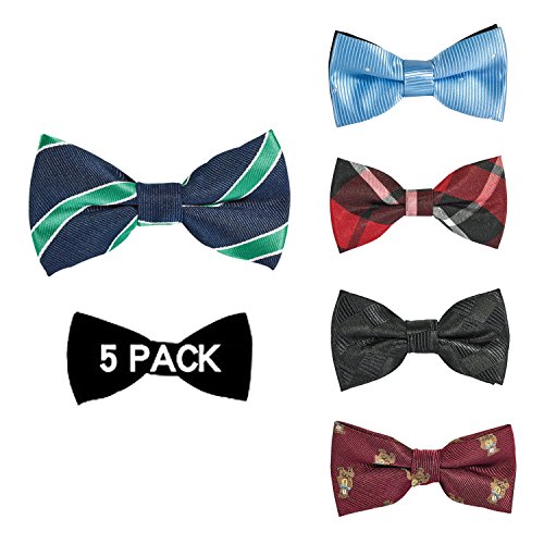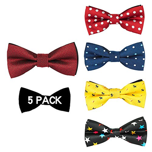 | OUMUS 5PC Boys Bow Tie - Stylish Adjustable Pre-tied Bow Ties,3.94"x 1.97" |