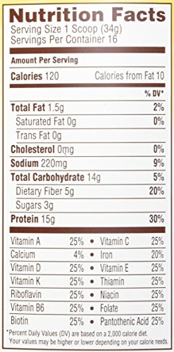 HEALTH SUPPLEMENT: Whip up a shake, a quick pre-workout drink, or use as a baking substitute - this versatile, flavored protein powder contains 15 grams of protein, 4.5 servings of fruits and vegetables* and 25% daily value** of 12 essential vitamins.