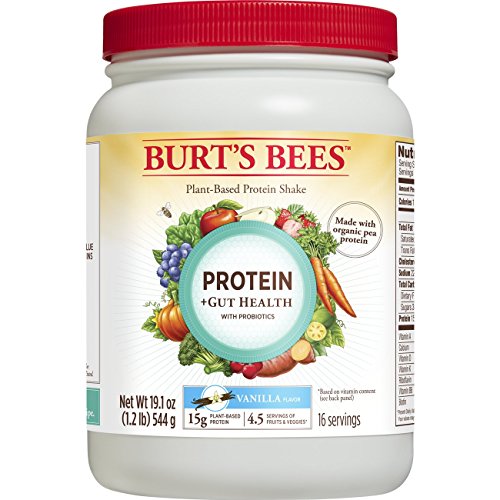 Drink in the benefits of a healthy lifestyle with Burt's Bees plant-based vanilla flavored protein powder for Gut Health. Each serving of protein powder contains prebiotics and probiotics* that help support digestive health as part of a balanced diet and healthy lifestyle. This plant-based protein powder is made with a combination of real fruits and vegetables and vitamin extracts, nourishing you from the inside out. For an easy, on-the-go breakfast or convenient snack, just mix 1 rounded scoop of vanilla flavored protein powder with 12 ounces of almond milk for a creamy, smooth shake, or blend into your favorite smoothie recipe. The best of nature goes into this healthy protein shake to bring out the best in you. *GanedenBC30