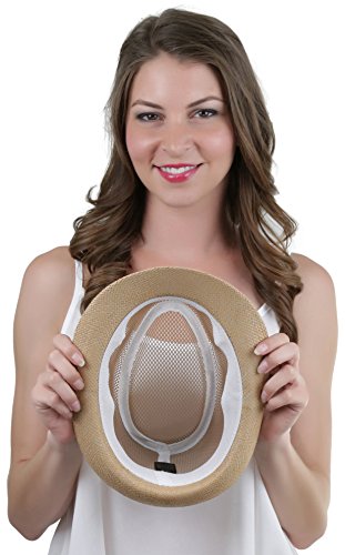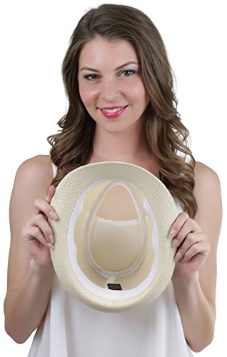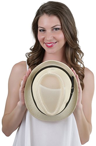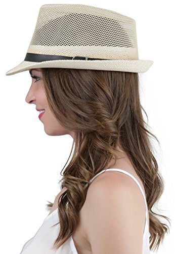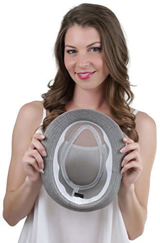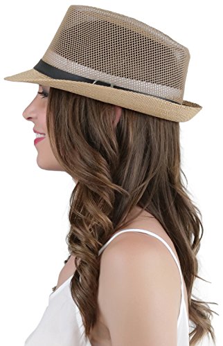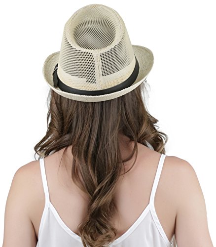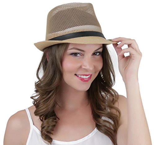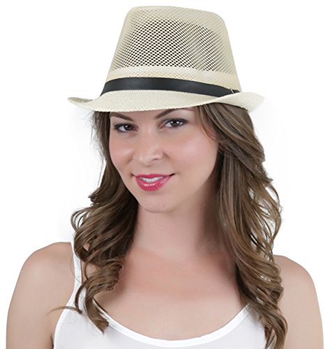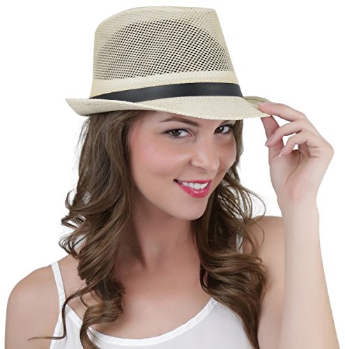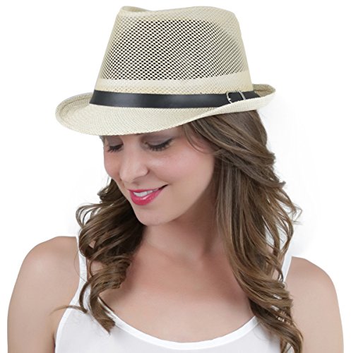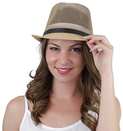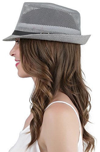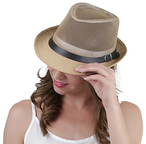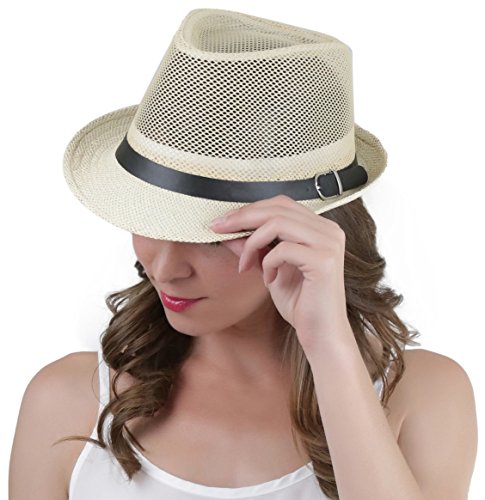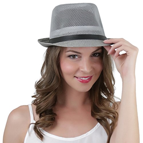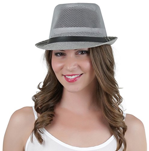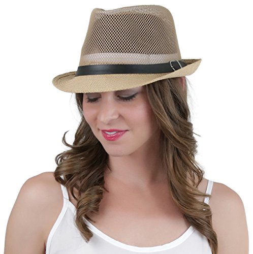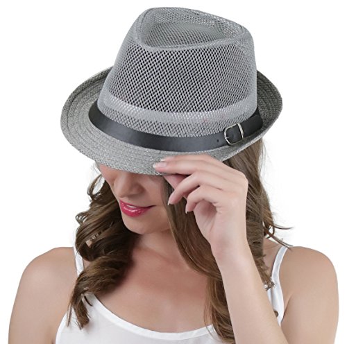 ToBeInStyle Women's Black Belt Sheer Fishnet Crown Fedora