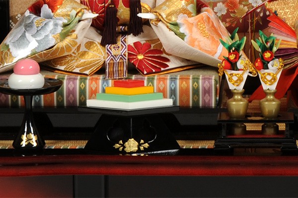 親御様、お子様、縁者様の健康と発展を願いながら職人が丁寧に仕上げた雛人形飾り/雛人形が初節句のお祝いにはなを添えます。