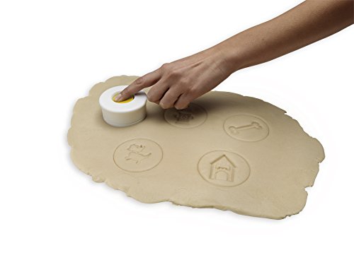 Create delicious custom cookies that will wow your friends. This cookie stamp collection includes a round cookie cutter that doubles as a lid with five distinct, dog-themed stamps to choose from for endless kitchen fun.