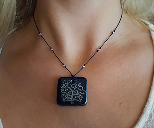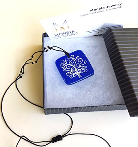 -. Title : Moneta Jewelry, Recycled Glass Tree of Life Pendant Necklace, Handmade, Fair Trade, Unique Gift