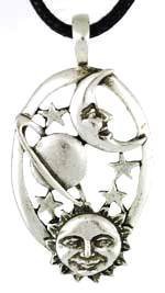 -. Title : Sun, Moon, Planets and Stars Harmonious Universe Pendant - Bonus Black Cord Necklace