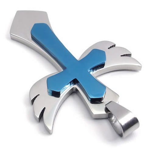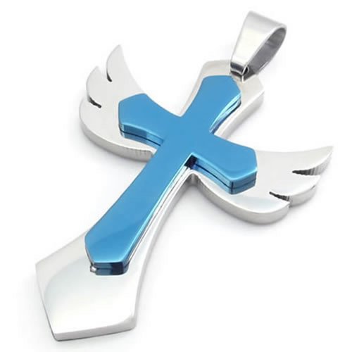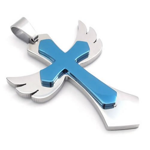 -. Title : KONOV Stainless Steel Angel Wing Cross Mens Womens Pendant Necklace Blue 24 inch Chain