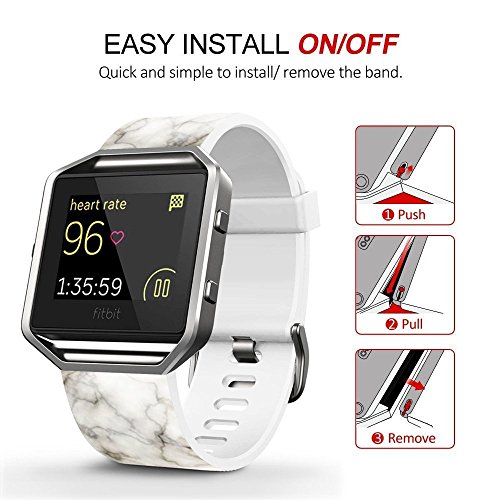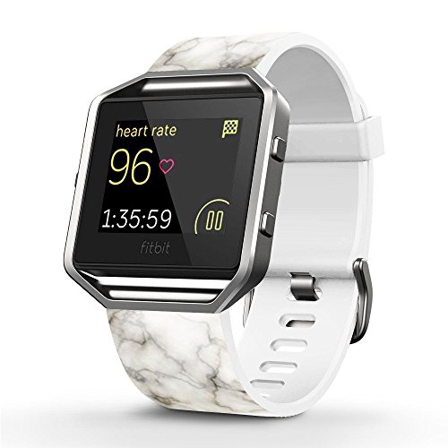Fitbit Blaze Accessories Classic Band Large, Soft Leather Replacement Sport Strap Band with Quick Release Pins for Fitbit Blaze Smart Fitness Watch Black and white marble pattern