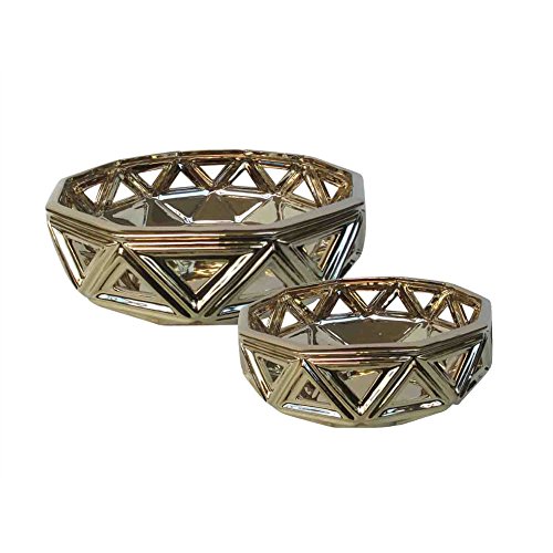 Benzara Geometric Patterned Ceramic Bowls, Gold, Set of Two