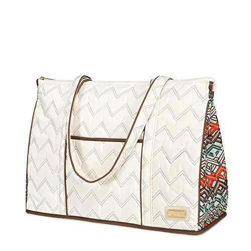 Studio : Cinda b. Publisher : Cinda b. Binding : Apparel Product Description Cinda b's Zip Top Resorter is just the right size to take everything you need whether your getaway involves family and friends or is just to enjoy some peaceful time all to yourself. Of course it's got great design elements, but don't its good looks fool you, for this hard-working bag is brimming with travel-friendly features. This spacious bag boasts 6 roomy interior slip pockets to ensure that you'll have a place for all sorts of goodies. On the exterior, there's a slip pocket as well as a unique zip-and-slip pocket that can be either unzipped at the bottom allowing you to slide the bag onto the handles of most rolling bags or kept zipped and used as a traditional slip pocket. It measures a take-me-everywhere 19" wide x 14" high x 7" deep, has a hard bottom so it always sits upright and is fashioned from a lightly padded, quilted nylon/poly fabric that is water resistant, stain resistant, 100% machine washable, surprisingly lightweight and extremely durable. ABOUT CINDA B: After running a successful interior design business in Atlanta, Cinda found it difficult to find a fully functional, stylish bag that was versatile enough for the modern woman's everyday life. As a result, the cinda b brand was created. For cinda b, it's important to produce American handbags and create American jobs. Teaming up with one of the most experienced, well-known sewing companies in the country, each and every cinda b product is proudly made in the USA. Cinda b offers a variety of pattern options that combine bold and unique modern prints with effortless functionality. The cinda b family invites busy women everywhere to discover their beautiful collections of handbags, travel bags and accessories available on Amazon. 0