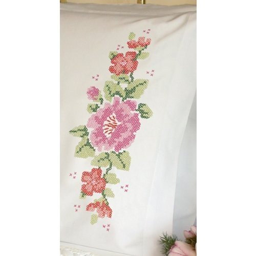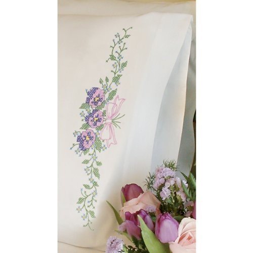 This pretty swag features a trio of pansies grouped together by a dainty pink bow. Package includes two standard size pillow cases printed in wash-away ink, a shopping list for thread, and easy instructions. Finished Size: 20-Inch by 30-InchFeature