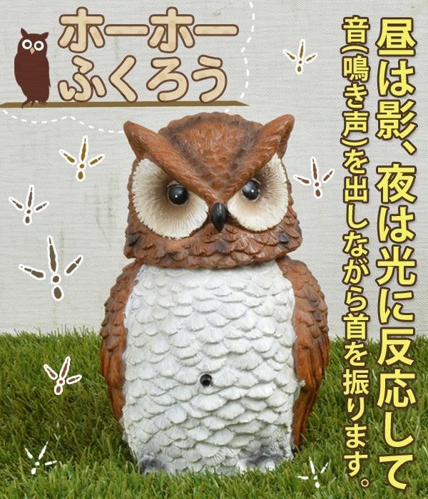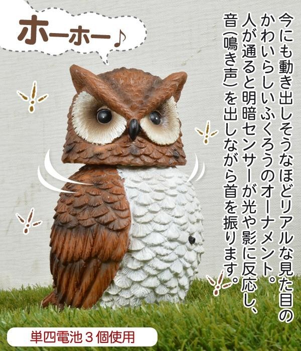 明暗の変化でホーホーと鳴きながら首を振る、ふくろうのオーナメントです。小さめのサイズで場所を取らないので、お庭はもちろんお部屋に置いても可愛いインテリアになります♪ |
