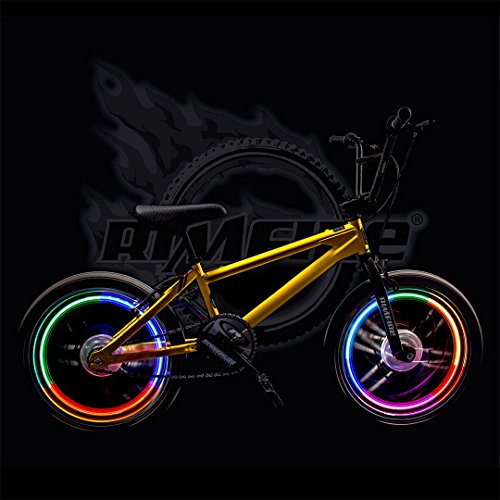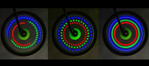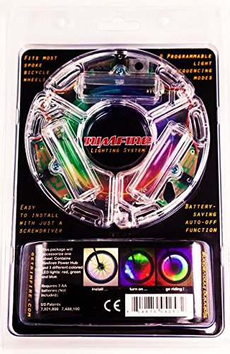 -. Feature : 3 Hyper-bright LED light assemblies for maximum brilliance and effect / 9 programmable light sequencing modes / Battery saving auto-off function / Red lightweight design / Fits all size spoke wheels
