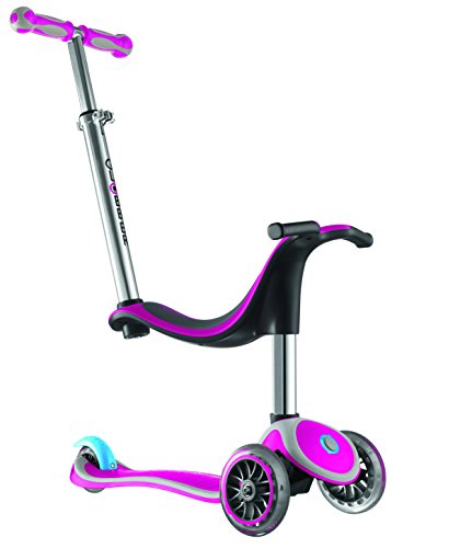 -. Brand : Globber -. Feature : Recommended for ages 1 and older; Seat weight rated for up to 44lbs; Scooter weight rated for up to 100lbs / Adjustable seat positions and handlebar heights which grow with your child / Ergonomic comfort seat with moto style handlebar for better child handling / Secure Direction Button Lock that makes it easy to learn by locking the steering to increase balance / Steel plate reinforced deck for maximum support; Low deck clearance from the ground to maximize stability -. IsAutographed : 0 -. IsMemorabilia : 0 -. Label : Globber -. Manufacturer : Globber -. MPN : MYFREE4IN1 -. PartNumber : MYFREE4IN1 -. ProductGroup : Sports -. ProductTypeName : OUTDOOR_RECREATION_PRODUCT -. Publisher : Globber -. Studio : Globber -. Title : Globber 3 Wheel 4-in-1 Scooter