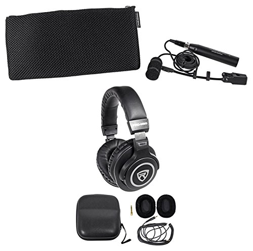 -. Feature : PRO 35 Cardioid Condenser Clip-on Instrument Microphone. UniMount clip permits accurate positioning, provides shock resistance and protects element. Cardioid polar pattern. Extended frequency response. 6' (1.8 m) cable permanently attached to microphone. Element: Fixed-charge back plate, permanently polarized condenser. Polar Pattern: Cardioid. / Frequency Response: 50-15,000 Hz. Low Frequency Roll-Off: 80 Hz, 18 dB/octave. Open Circuit Sensitivity: -45 dB (5.6 mV) re 1V at 1 Pa. Impedance: 250 ohms. Maximum Input Sound Level: 145 dB SPL, 1 kHz at 1% T.H.D.. Dynamic Range: (typical) 115 dB, 1 kHz at Max SPL. Signal-To-Noise Ratio: 64 dB, 1 kHz at 1 Pa. Phantom Power Requirements: 11-52V DC, 2 mA typical. Switch: Flat, roll-off. / Designed for sax, , brass and percussion, the PRO 35 excels in high-SPL applications and is ideal for active stage performances. Its extended frequency response captures subtle nuances of the performance. The included UniMount clip permits accurate positioning and provides shock resistance while protecting the element. The microphone's cardioid polar pattern reduces pickup of sounds from the sides and rear, improving isolation of the desired sound source. / Rockville PRO-M50 Studio Headphones w/ Detachable Coil Cable, Case+Extra Ear Pad . Professional High-Definition Studio Headphones. 40mm Neodymium drivers. Ergonomically designed swivel ear cups. sound isolation. Accurate sound reproduction. Minimal bleed. Sturdy and durable steel headband and arms. / Soft leather headband cover. Interchangeable leather and soft suede ear cups covers included. Detachable 51" coil cable made of 100% Oxygen Free Copper (158" fully extended). Gold plated 3.5mm connector. Gold plated ¼" adapter. Hard leather carrying case. Stainless steel headband frame and moving arms are durable and long-lasting.
