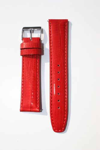 -. Title : 18mm Deep Red Quick-Release Patent Leather Lizard Grain Watchband for Michele Style