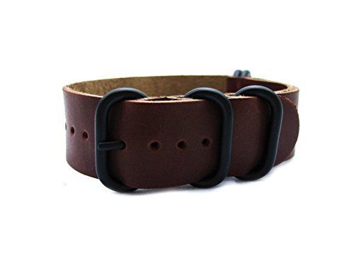 -. Title : HNS ZULUPATH 22mm Handmade Antique Vintage Dark Brown Calf Leather Watch Strap 5 PVD Coated Ring ZUL037