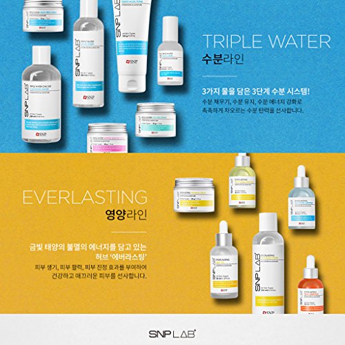 Waterful system containing 30% of Hawaii deep sea water, Italian sparkling water, and Canadian glacier water provides deep and strong moisturized elasticity filling up from the inside.