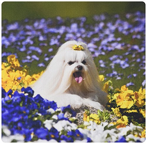 3dRose USA, California Maltese Lying In Flowers with Yellow Bow Mouse Pad (mp_192390_1)