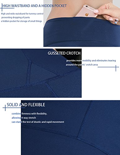 -. Feature : [HIGH WAISTBAND AND HIDDEN POCKET] High and wide waistband sit right below your belly botton for tummy control and preventing dropping of pants during workouts. A hidden pocket is build into the waistband for storage of keys, credit cards or an iPhone Plus. / [SOLID AND FLEXIBLE] The nylon and spandex blended fabric provides comfortable support and excellent range of motion during workout. The durable feature of the fabric allows the pants to stand reptitive use and washes without shrinking or losing shape. / [BREATHABLE AND NON-SEE THROUGH] Having past squate test and bend over test, The fabric is breathable, lightweight yet dense and opaque. It can moves with you during your workout and keep the area between waist and tight fully covered. / [SIDE POCKET AND GUSSETED CROTCH] Two side pockets can fit in keys, change or other small things. Gusseted crotch helps you concentrate on exercise by freeing you from worries about tearing around this area. / [NO CHAFING NO SHOWING OF SWEAT] Skin-friendly flatlock seams allow smooth motion without chafing. The deep color will not runs after washes and can prevent showing of sweat during workout.