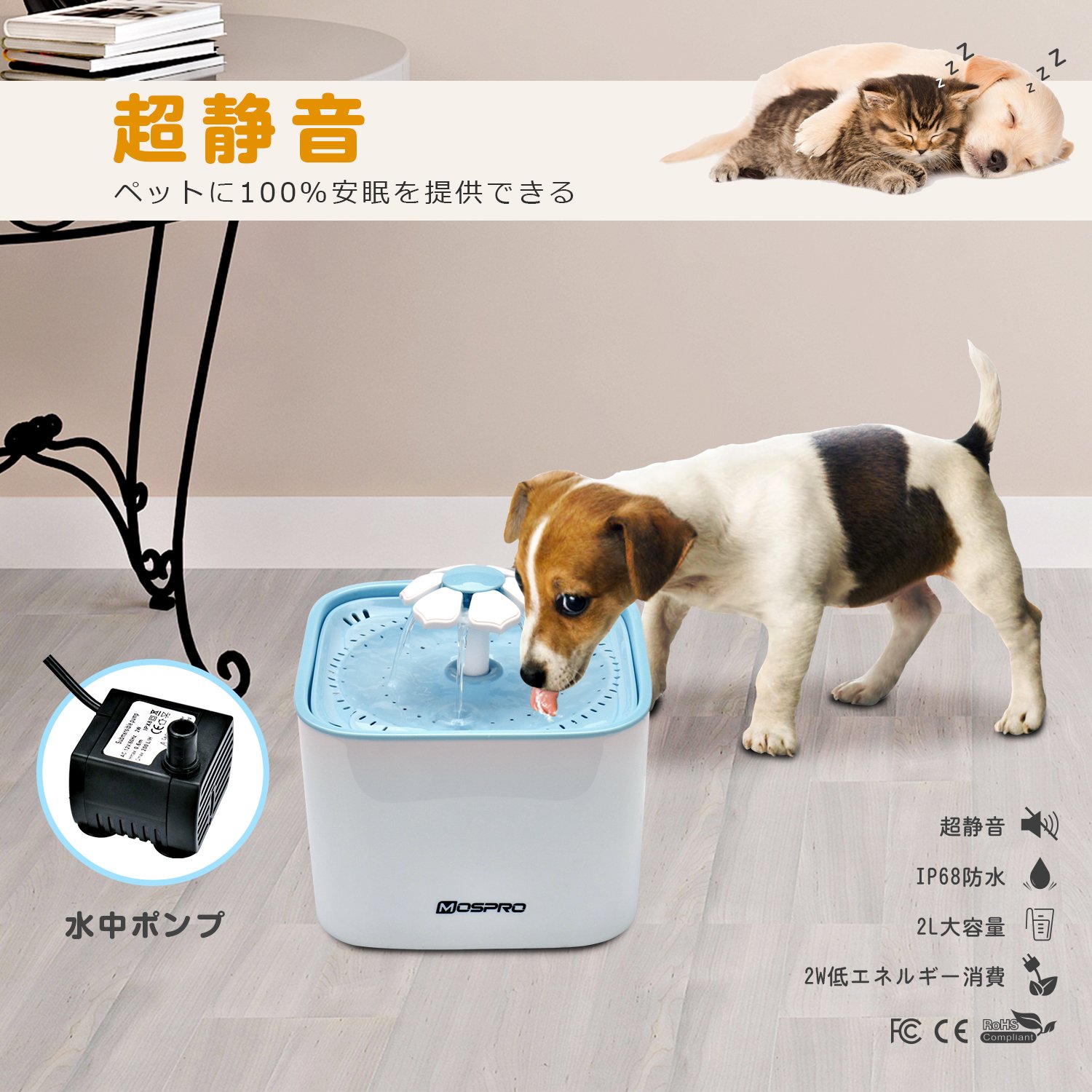 【超静音設計と省エネルギー】超静音設計の水中ポンプを採用し、水の音ほぼなしで、夜のお休みの邪魔にもなりません。省エネ技術が使用されており、「1.5KW/一ヶ月」という低消費を実現できます。また、耐久性について本製品は総数10,000時間以上働けます、無水状態での電源接続作動も一週間ほど持てます。