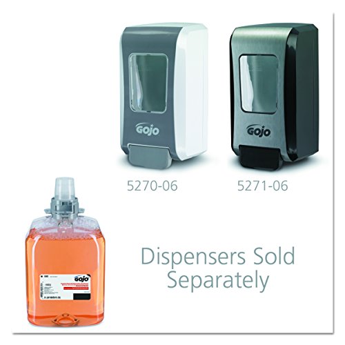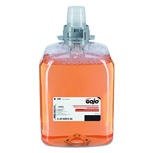 GOJO 5262-02 foam hand wash, 2000 mL refill container, helps remove unwanted dirt, residue, and bacteria from hands. The refill container fits a GOJO FMX-20 dispenser (sold separately), and is sealed and has a fresh dispensing valve to help reduce the risk of contamination. The hand wash is orange and has an orange blossom fragrance. It comes in a case of two refill containers.