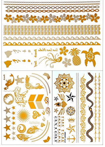 3 Pack Gold & Silver Metallic Temporary Tattoo