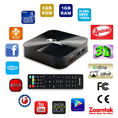 -. Title : Zoomtak K5 Android Tv Box Amlogic S805 Quad Core Android 4.4 Kitkat 1GB 8GB 2.4G/5.8G Dual Band WIFI with Bluetooth 4.0 Kodi 16.0 Fully Loaded Streaming Media Player
