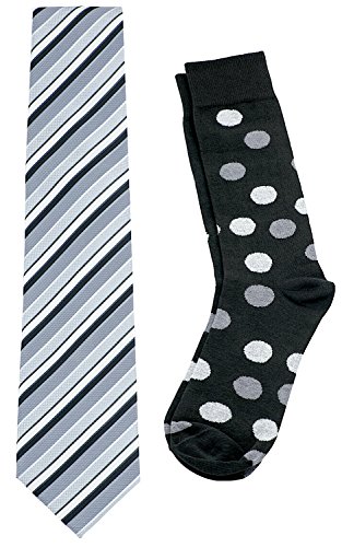 Product Description Scott Allan Collection MenOs necktie and sock set. High quality woven microfiber necktie with a pair of polka dot menOs dress crew socks.The necktie size is 59O long and 3.3O at the widest point. The sockOs are menOs sizes 10-13 the sock material is 80% cotton, 12% nylon and 2% spandex. Buy direct and save! 0