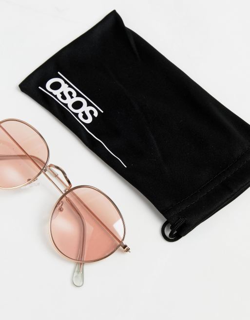 ASOS DESIGN metal round sunglasses in rose gold with pink mirror lens