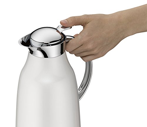 Perfekt temperierend und attraktiv geformt, arbeiten alfi-Isolierkannen generell für maximales Wohlbefinden und durchgestyltes Ambiente. Isolierkanne Glory inszeniert sich dabei als aktuellstes Modell funktionaler Kultiviertheit und offeriert außer perfekter Isolierleistung, ergonomischer Haptik und pragmatischem Handling zeitlose Optik für relaxtes Feeling. Sanfte Linien und harmonisches Format machen die von Martin Hauenstein gestaltete Isolierkanne zum Klassiker mit Favoriten-Potential. In den Trendfarben ivory cream, midnight black, velvet burgundy, space grey sowie in satin silver präsentiert sich Isolierkanne Glory gleichermaßen trendig wie unempfindlich: Aus Metall mit unempfindlicher Mehrschicht-Einbrennlackierung gefertigt, übersteht das Outfit alles vom Kaffeeklatsch über Bürostress bis zur Tee-Session und ermöglicht über die praktische Einhand-Ausgießtaste entspannten Umgang in jeder Situation. Somit wird diese Isolierkanne je nach Geschmack zu Ihrer Kaffeekanne oder Teekanne. , Made in Germany , Design: Martin Hauenstein , Metall mit unempfindlicher Mehrschicht-Einbrennlackierung , 12 Stunden heiß oder 24 Stunden kalt , Praktische Einhand-Ausgießtaste , Pflegeleichter alfiDur Vakuum-Hartglaseinsatz Farbe: Polar Weiß Material: Metall Länge: 14 cm Breite: 18 cm Höhe: 26 cm Füllmenge: 1 L Hersteller-Artikelnummer: 3512219100 , Lieferumfang:1 Alfi Isolierkanne Glory, Thermokanne, Kaffeekanne, Teekanne, Metall, Polar Weiß, 1 LFeature